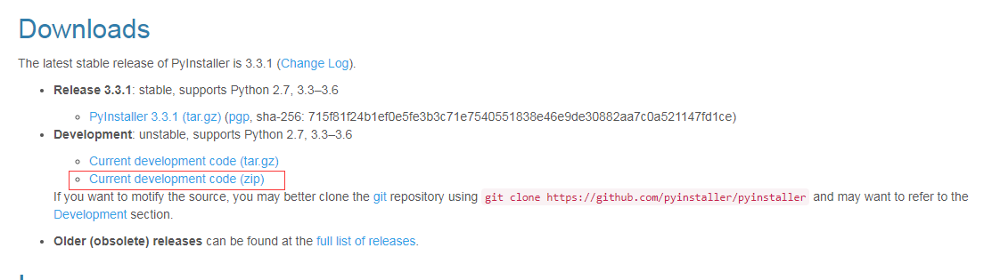 首先,下载Pyinstaller,下载地址:http://www.pyinstaller.org/downloads.html。