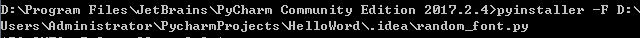 会在当前命令行所在的文件夹下创建两个文件:build和dist,打开dist,可以看到生成的exe文件:random_font.exe,双击运行即可。