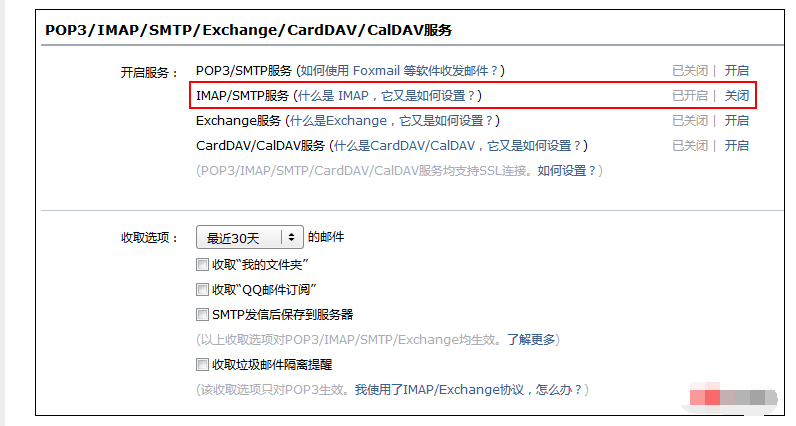 ↑ 选择 IMAP/SMTP 服务,点击开启服务。