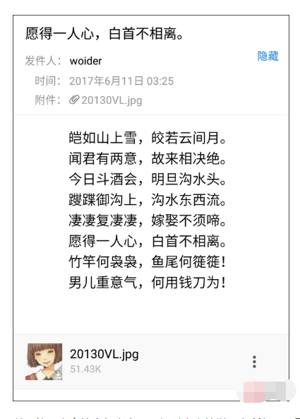 $title = '愿得一人心,白首不相离。';// 邮件内容