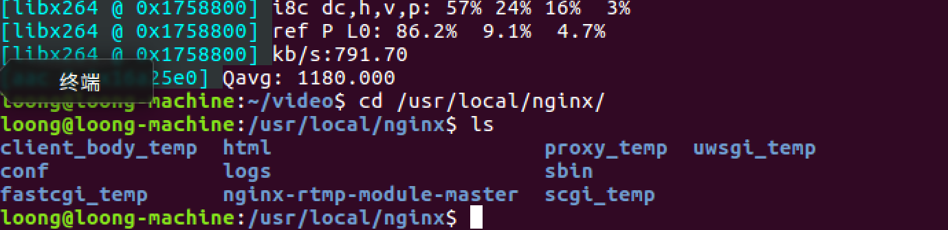 其中,HLS流表现较明显,在nginx的临时目录下,直观的可看到m3u8索引文件和N多个.ts文件。m3u8列表会实时更新,且会动态更改当前播放索引切片(.ts)。这种实时更新的机制,不会使得.ts文件长时间存在于Nginx服务器上,且当推流结束之后,该目录下的内容会被全部清除,这样无形中减缓了nginx服务器的压力。另外,也阐释了HLS这种流媒体播放相较RTMP延时较高的原因