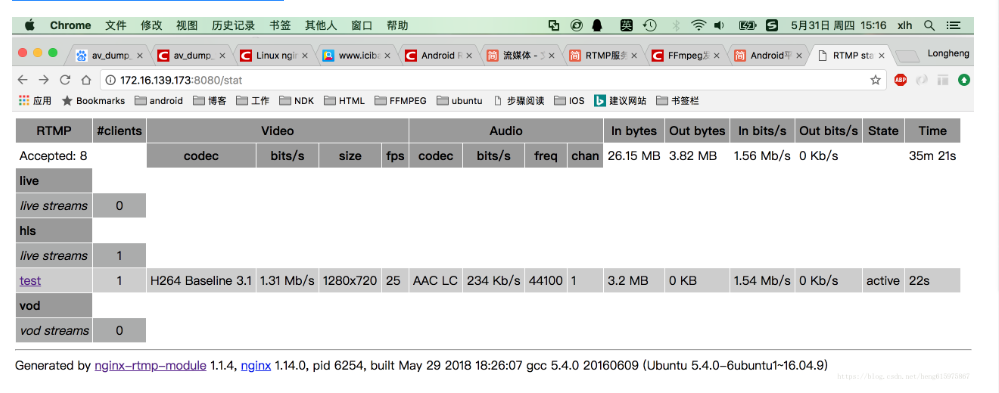 RTMP流:rtmp://localhost:1935/rtmplive/test