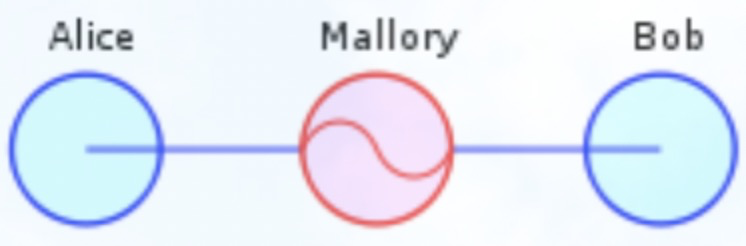 假设爱丽丝(Alice)希望与鲍伯(Bob)通信。同时,马洛里(Mallory)希望拦截窃会话以进行窃听并可能在某些时候传送给鲍伯一个虚假的消息。