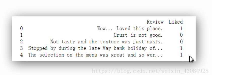 dataset = pd.read_csv('Restaurant_Reviews.tsv',delimiter='\t') #加载数据
