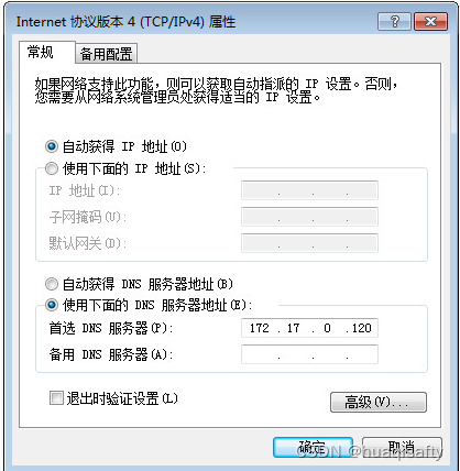 客户端电脑无法连接服务器时将DNS填写成域服务器IP,并将网络改成自动获取