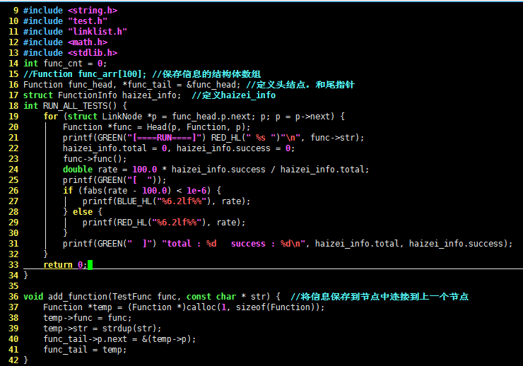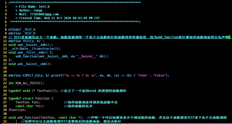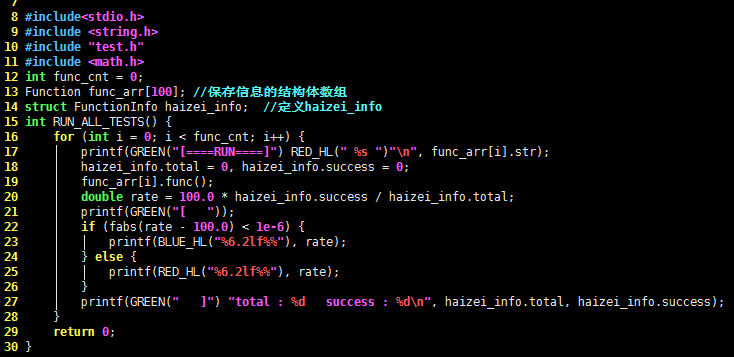 - 里面有个TEST(func, add) { } 没有返回值类型 也没有类型定义 ,所以一定是用宏实现的。