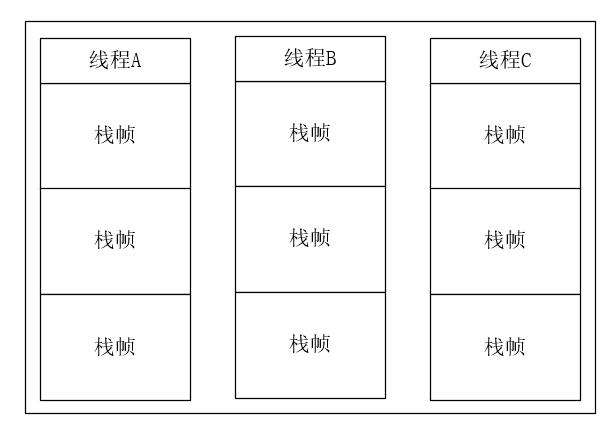 两个线程就可以同时用不同的参数调用相同的方法。那么问题来了,调用栈和线程之间是什么关系呢?答案是:每个线程都有自己独立的调用栈。我们可以使用下图来简单的表示这种关系。
