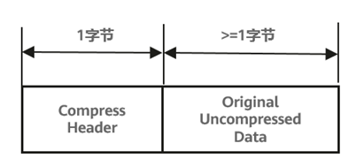 在处理数据时,如果数据过短,即小于字段压缩阈值参数rds_column_compression_threshold,或调用压缩接口后发现并未明显带来存储空间的节省时,系统将采用该格式。