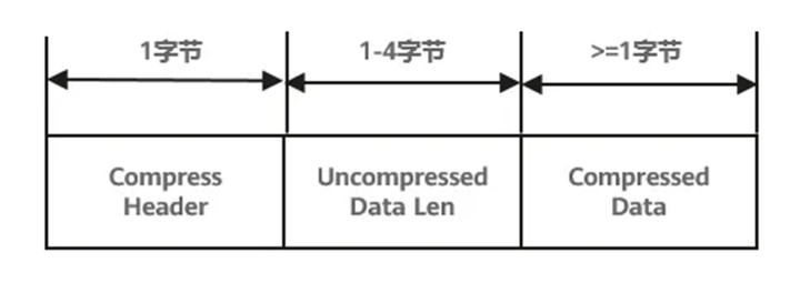 它包含Compress Header(压缩头)、Uncompressed Data Len(未压缩前的字段长度)和Compressed Data(压缩数据),作用如下: