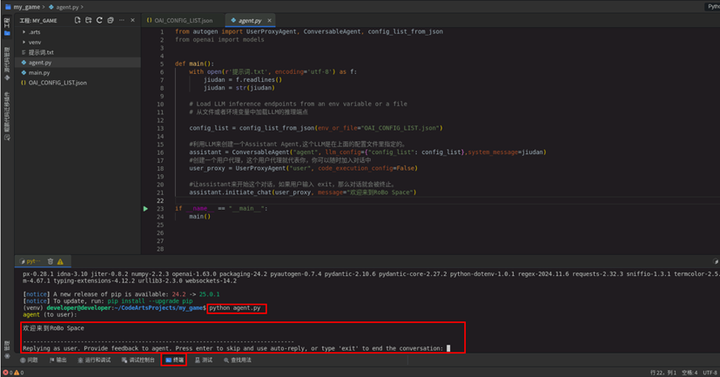 本案例中,需要调用DeepSeekV3大语言模型,需要安装Python大模型应用开发框架AutoGen。