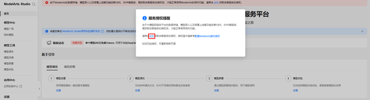 (可选)如果遇到“服务授权提醒”弹窗,参考下面两步进行操作,如果没有则忽略跳过。