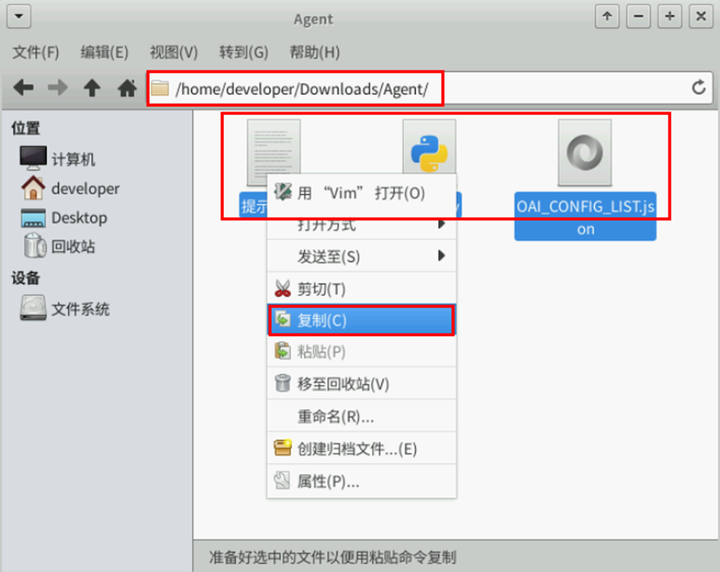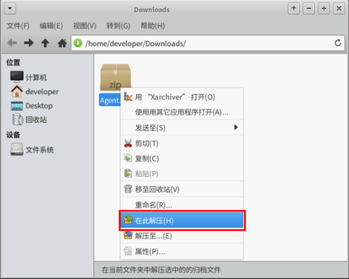 在云主机中用浏览器访问https://dtse-mirrors.obs.cn-north-4.myhuaweicloud.com/case/0023/Agent.zip,下载DeepSeek接口调用代码,鼠标右击下载的zip包,选择“在此解压”。