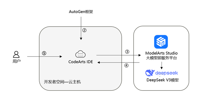 ④ 调用ModelArts Studio预置DeepSeekV3模型;