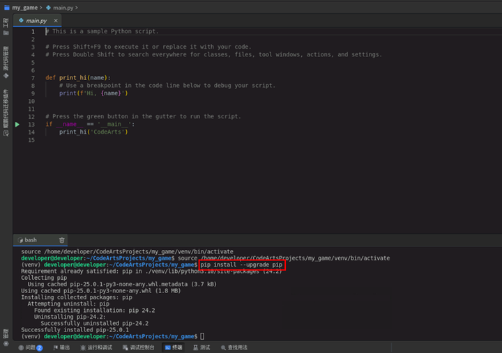 再次重新打开终端,如果命令行开头显示“(venv)”,则表示成功激活虚拟环境。
