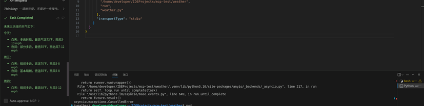 3.4 Cline插件调用MCP Server工具查询天气