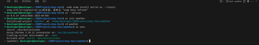 5. 执行以下命令安装MCP Server开发所需要的依赖包。