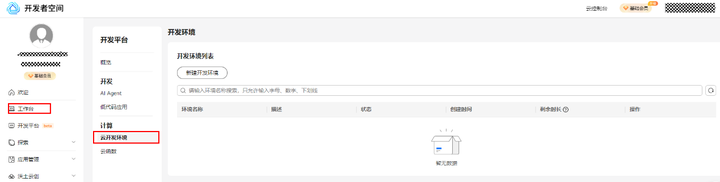 ②用华为云账号登录,点击 “新建开发环境”;