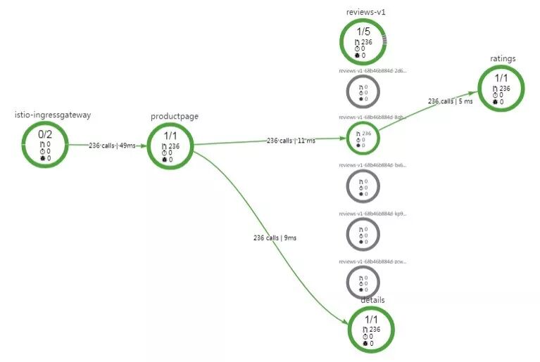 官方最佳时间Bookinfo应用,并且给Reviews配置了五个实例