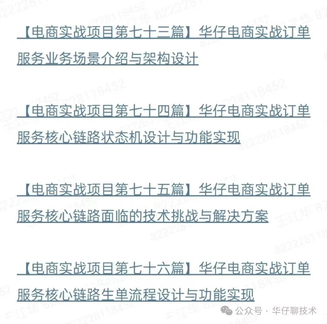目前正在火热更新电商最重要的核心模块:亿级订单和支付,订单服务即将结尾。这个项目干货真的炸!从高并发系统设计到支撑亿级数据量实操,全是实战硬货,连硅谷CTO都来偷师,非常值得一看,想突击面试亮点的小伙伴快冲,这波绝对血赚!后面的内容更精彩,都是企业生产级高并发实战经验。毫不夸张的说,我在项目里面使用了很多技术栈,已经超越了很多企业级的项目。除了这套实战之外,之前还爆肝完结两套业界相对比较完整的消息中间件系列:超 500 万字详解,从零到一带你彻底吃透 Kafka + RocketMQ ,还有其他一些基础中间件专栏更新中,星球已更/待更专栏如下: