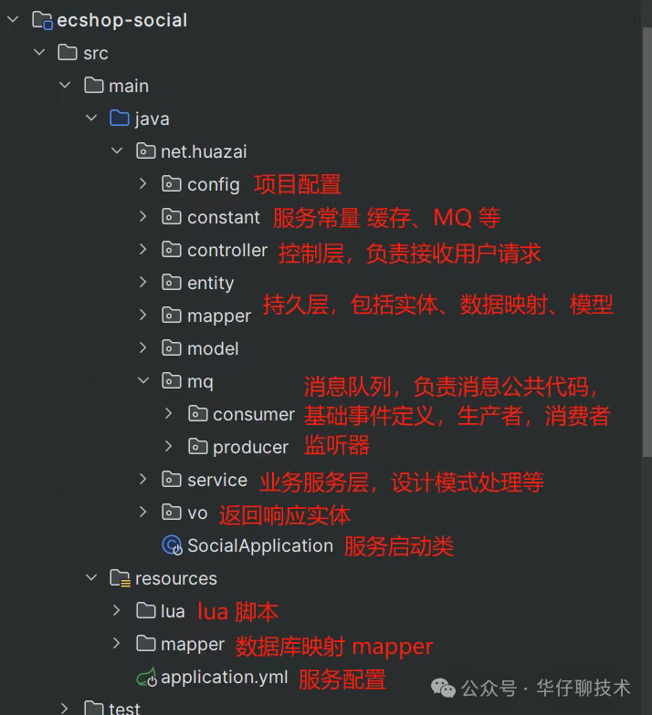 下面是社交服务的一个代码结构: