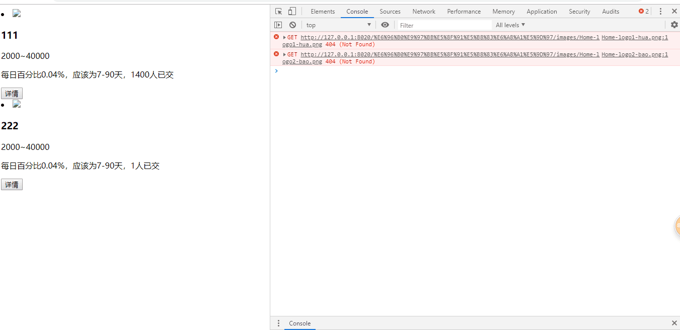 ps:网上找的源码,没有图片的路径才会报错,但是数据以及传递到页面上了