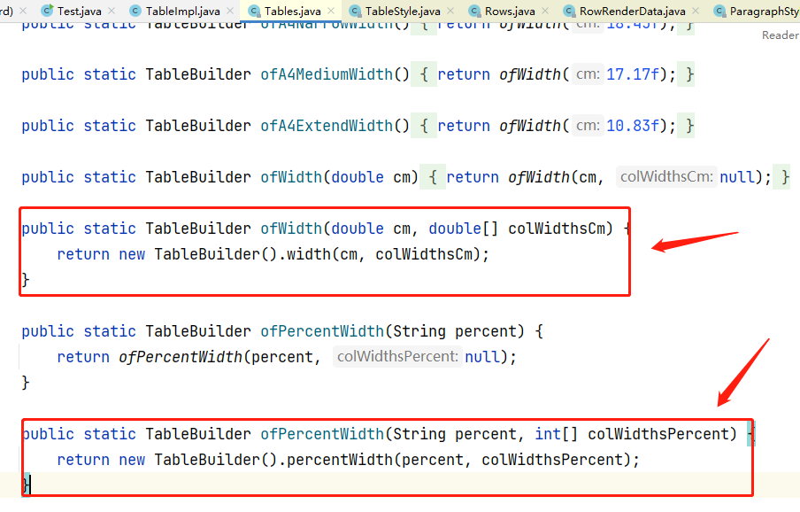 在Tables.java的源码中有这样两个函数,一个是根据double类型,一个是String类型