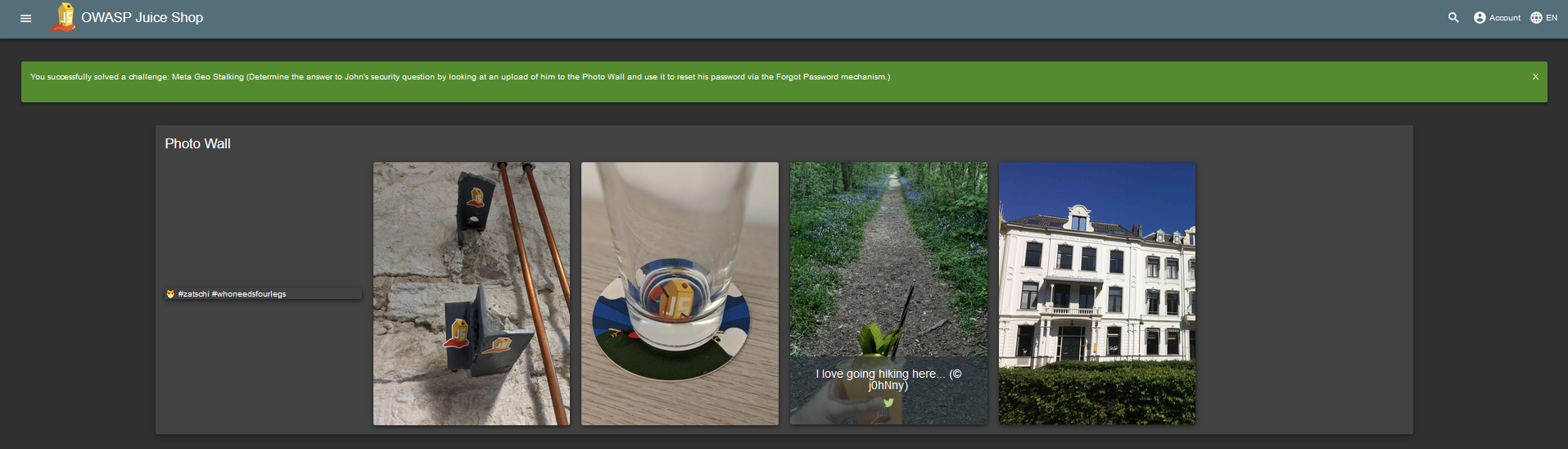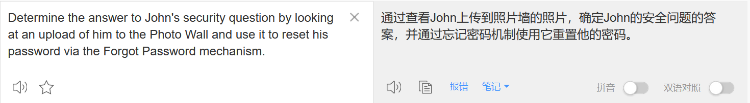我们可以看到密保问题是“What's your favorite place to haiking ?”对应照片墙里“我最喜欢去远足的地方”的文案。