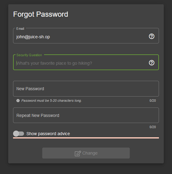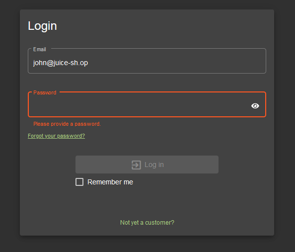 用John的邮箱尝试登陆(在AboutUs模块已知邮箱格式xxx@juice-sh.op)