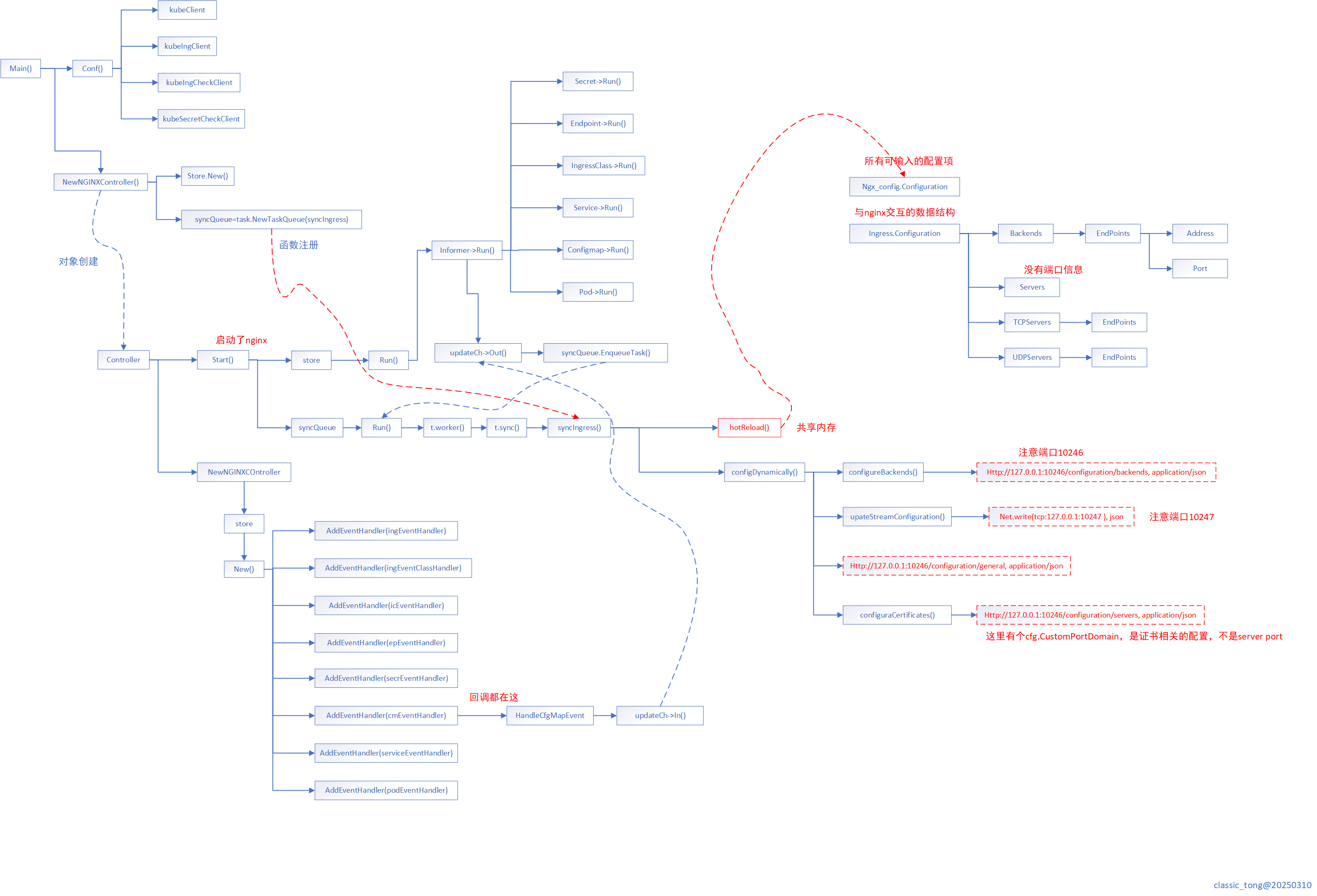 tengine-ingress包含:controller,lua脚本,nginx程序三部分,下图为controller的代码流程图: