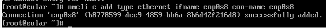 nmcli c add typt ethernet ifname enp0s8 con-name enp0s8