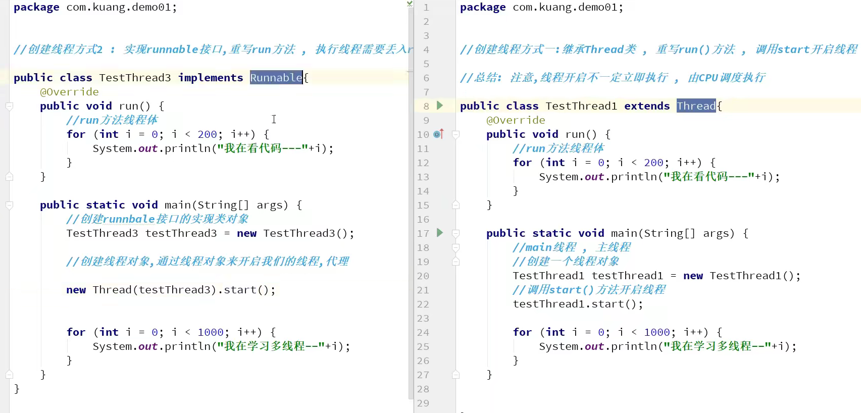 使用 implements Runnable创建 new thread(对象名).start();启动