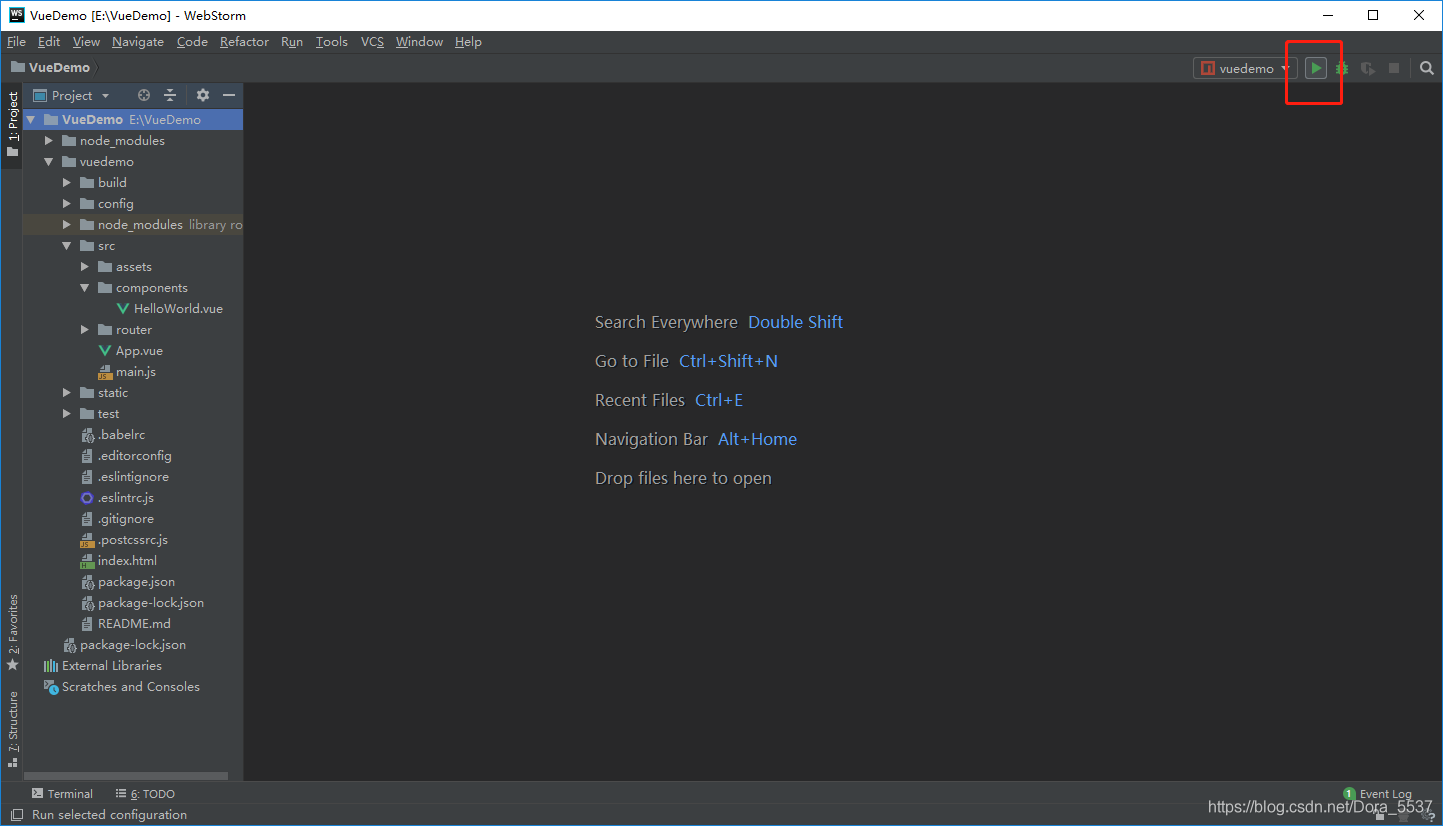 在WebStorm中怎么打开一个已有的项目,这个不用多说,那么如何运行一个vue项目呢?
