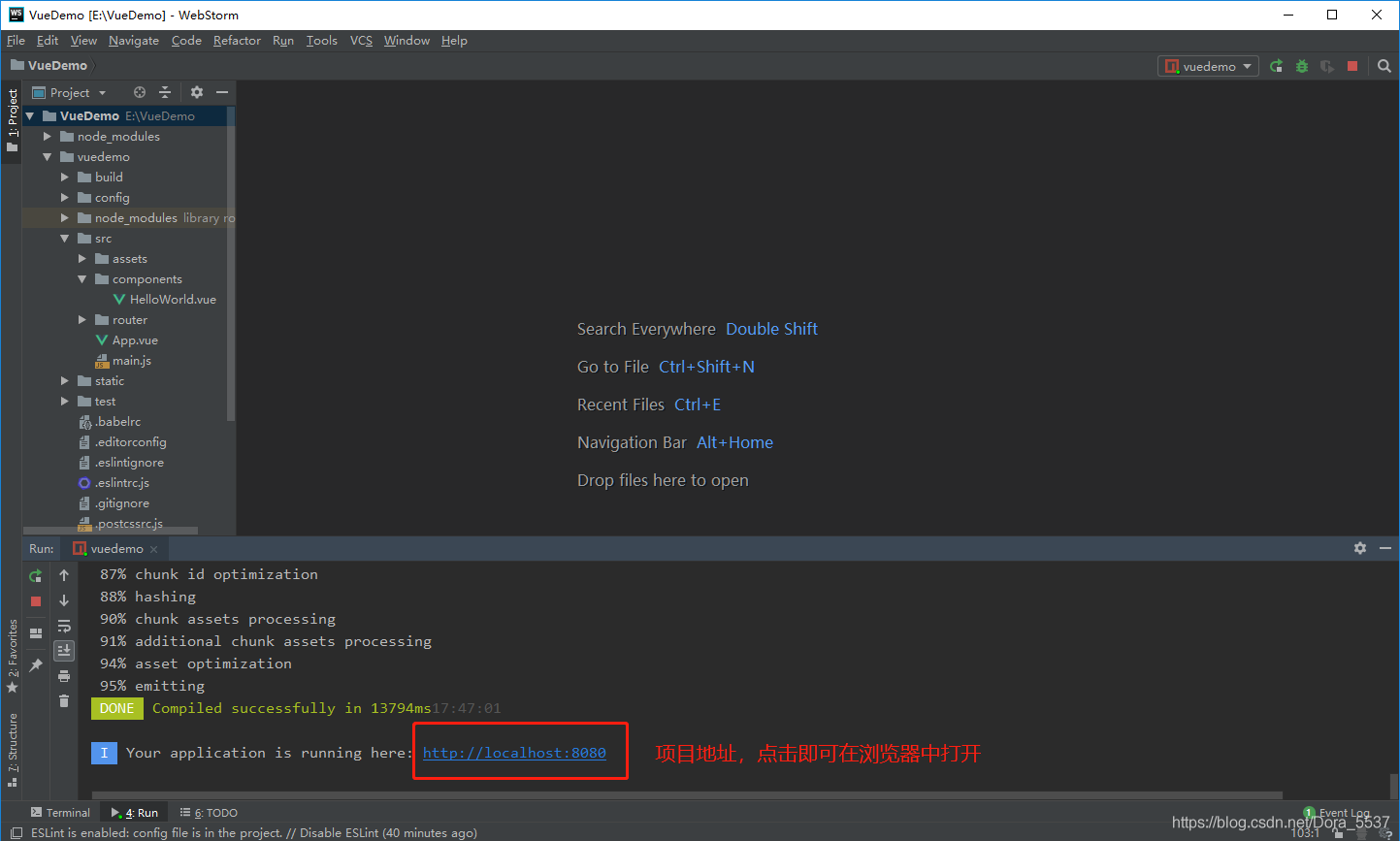 6.运行结束如下图所示,点击项目地址即可在浏览器中打开。