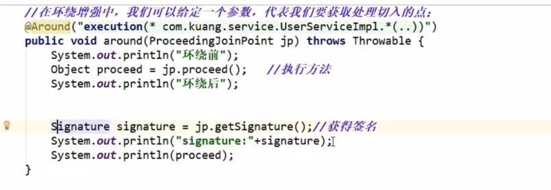 在环绕增强中,可以给定一个参数,代表我们要获取处理切入的点