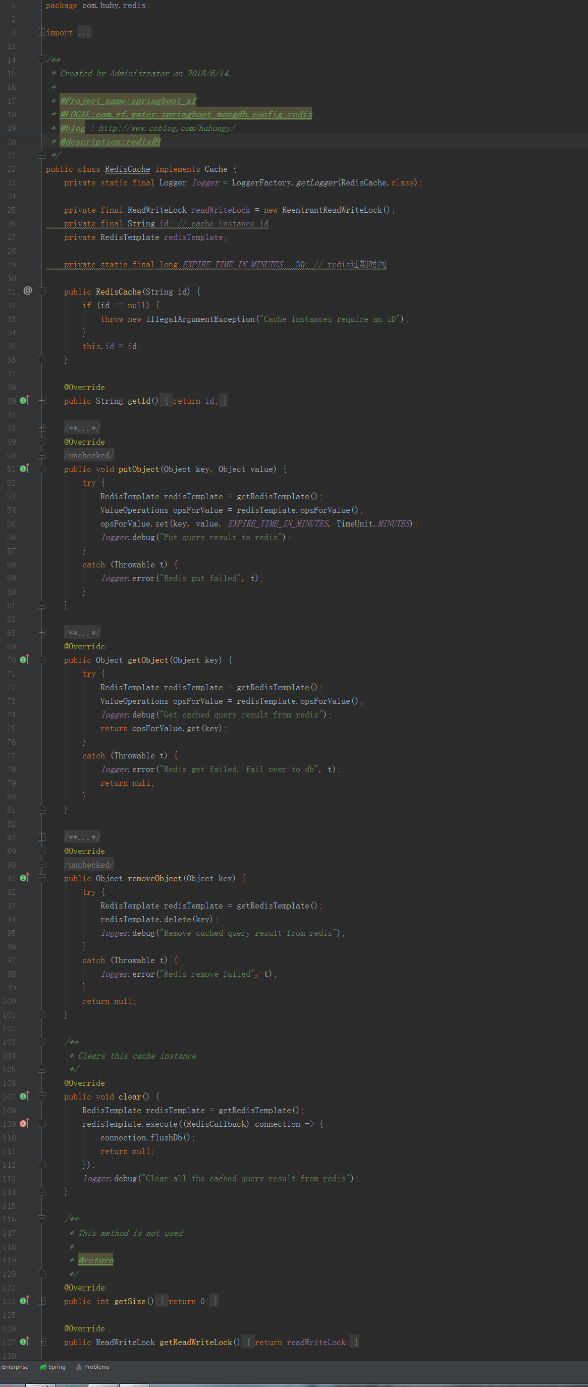 到这redis缓存的配置类已经完成,剩下的是怎么让其生效了