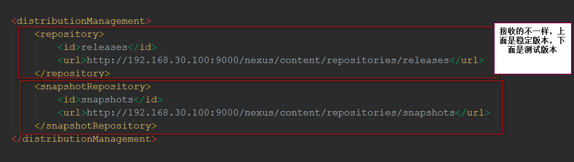 第二步:将 distributionManagement 的一整块,放到要被 deploy 的项目的 pom.xml 中