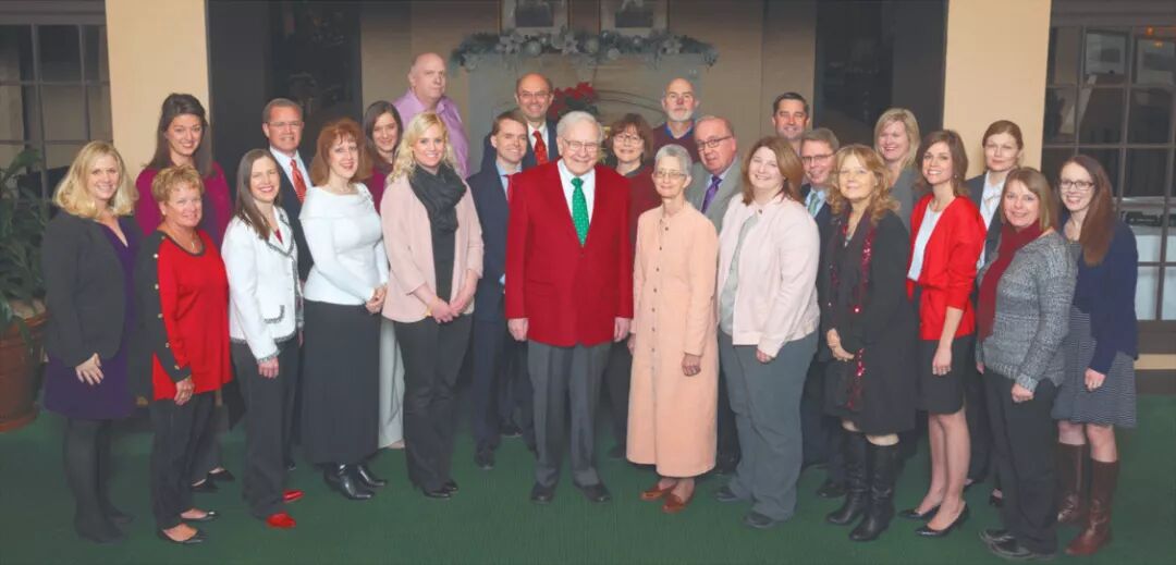 巴菲特已经消除了他公司几乎所有的官僚作风。伯克希尔·哈撒韦的投资组合公司有近40万名员工,但其实际的总部只有20多名员工。这是世界上最大的公司之一2014年圣诞派对的照片: