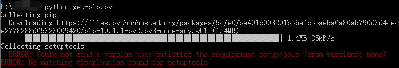 https://pypi.org/project/setuptools/#files 下载了 setuptools-41.0.1 这个版本。再次执行命令: