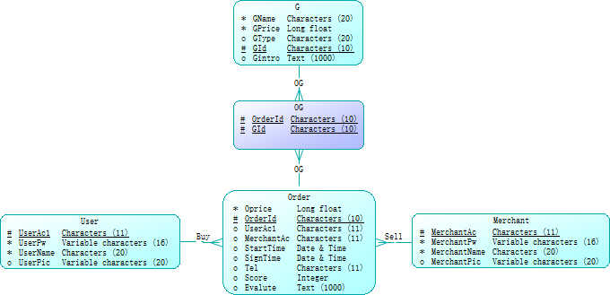 小组最终确定建立四个实体来储存主要信息,同时在软件最为核心的订单系统新增关系表,以保证信息的准确与数据流信息传递的简捷。