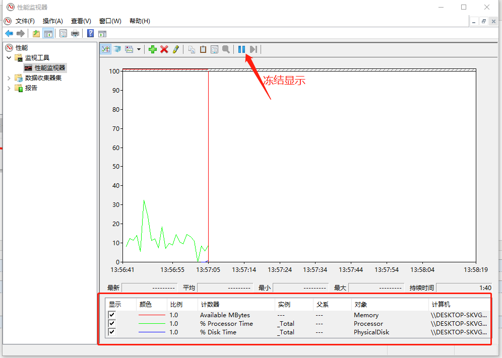 监控完毕后点击冻结显示按钮,即可计算服务器使用资源