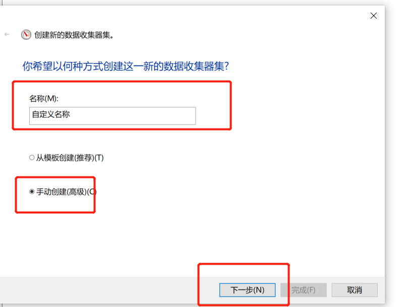2.自定义一个名称,选择手动创建点击下一步