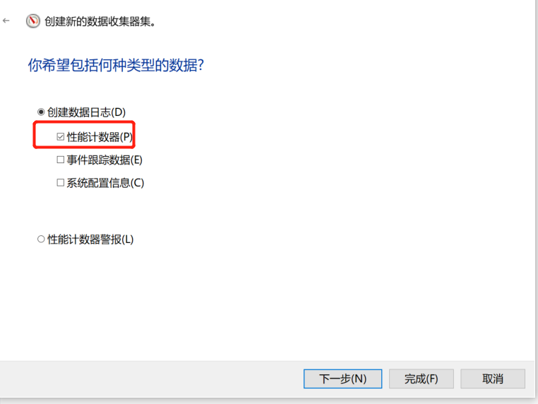 3.选择性能计数器后,点击下一步