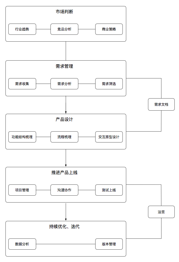 比如需求调研问卷,用户画像,竞品分析,思维导图、流程图,产品原型,需求文档,项目排期和验收上线准备等事宜。