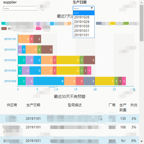 当点击选择supplier时, 生产日期也会随着这个supplier的变化而变化筛选项