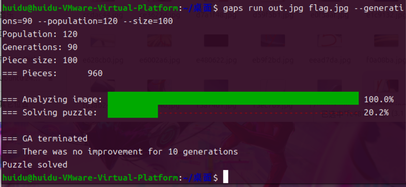 gaps run out.jpg flag.jpg --generations=90 --population=120 --size=100 #还原原图片