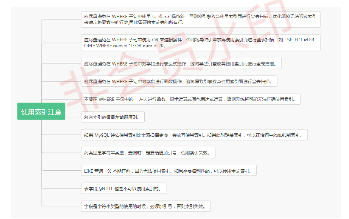 什么时候不要使用索引?使用 MySQL 的索引应该注意些什么?