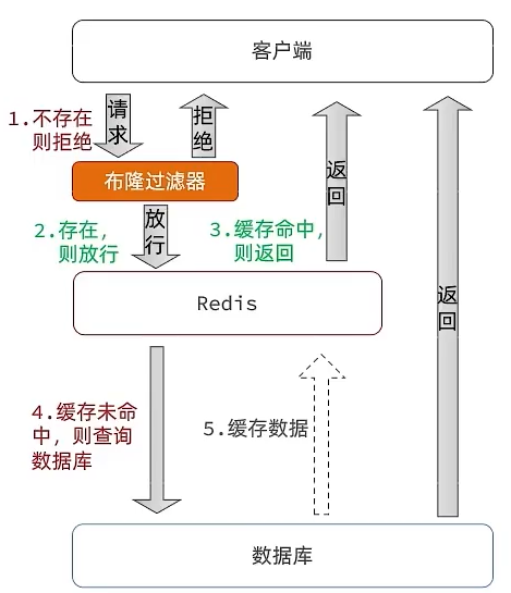 假设布隆过滤器判断这个数据不存在,则直接返回