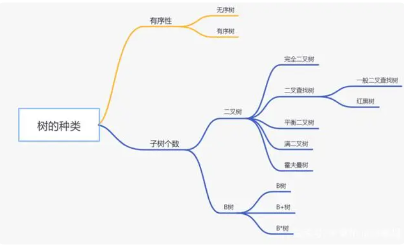 按照节点包含子树个数,可以分为B树和二叉树,二叉树可以分为以下几种: