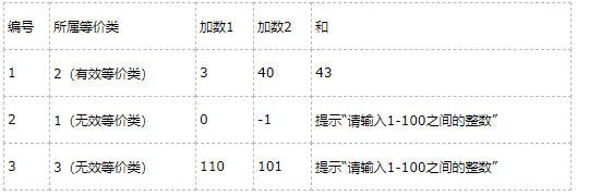 分为一个有效等价类,和两个无效等价类,进行编号并选取代表值进行测试