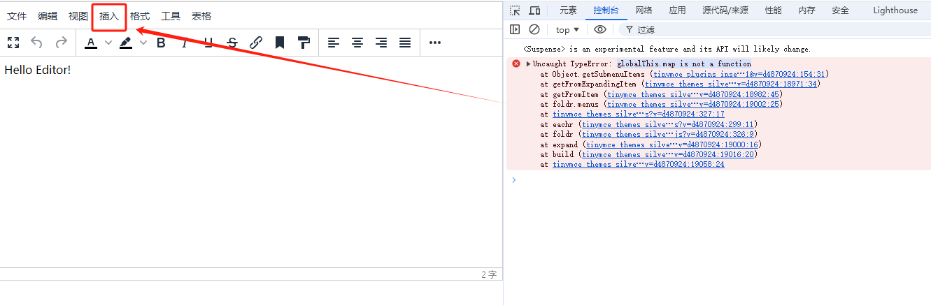 关于在nuxt3项目中配置tinymce后点击“插入”菜单会报globalThis.map is not a function的解决
